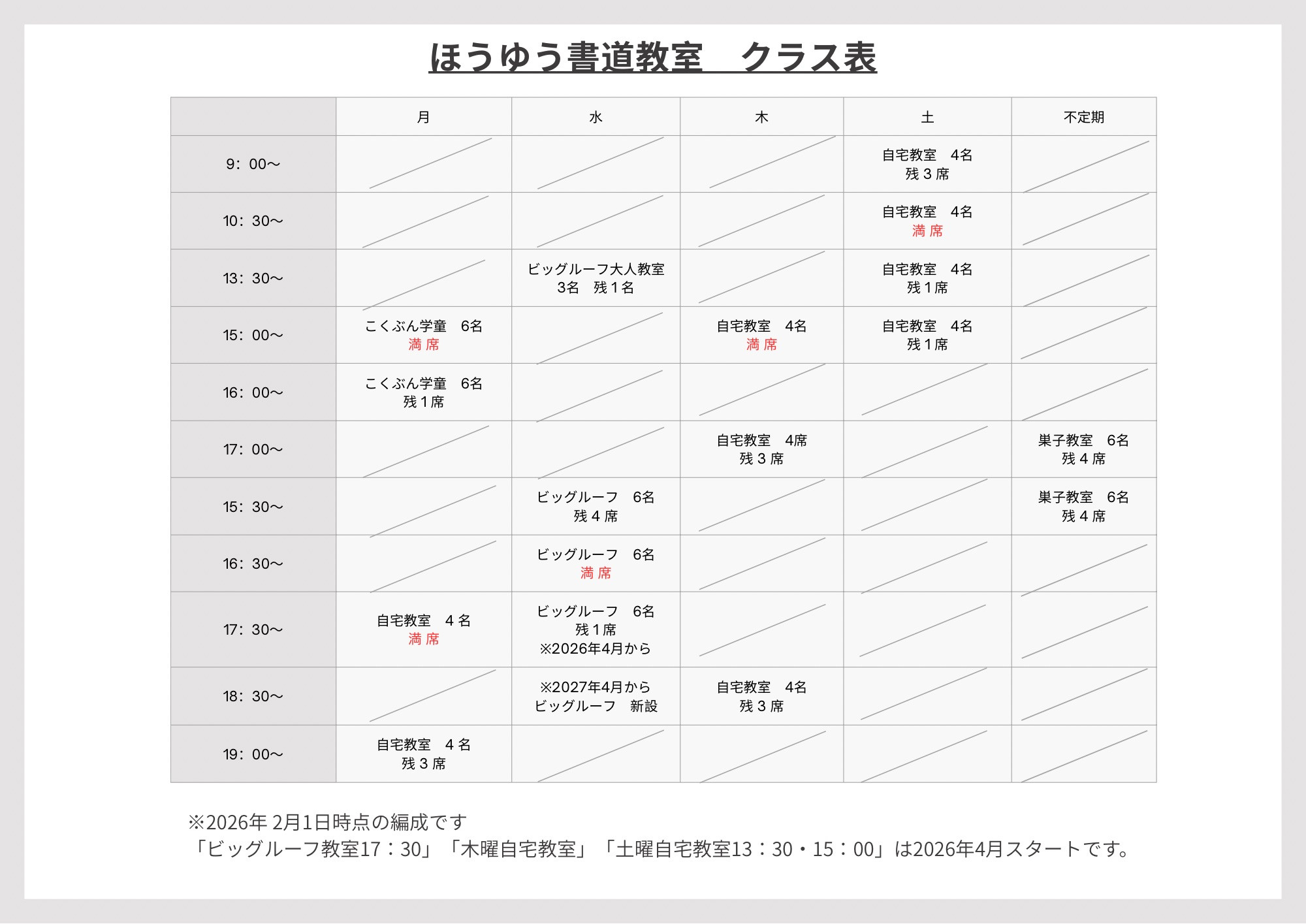 詳しくは上記チラシやクラス割をご覧いただき