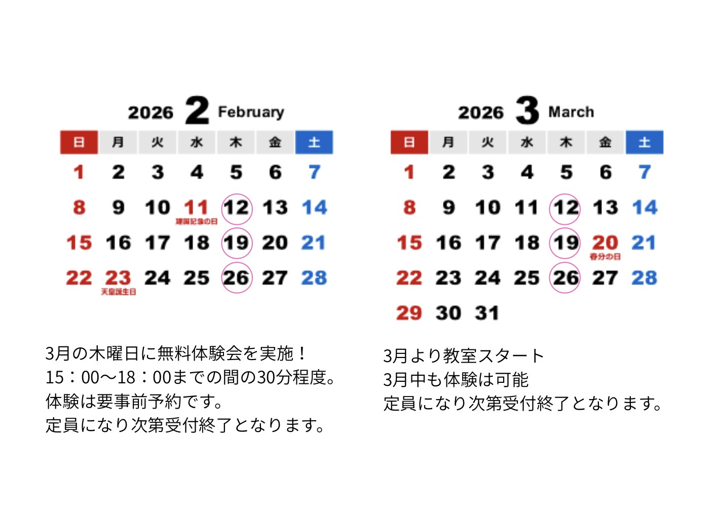 上記クラスは全て来年度令和8年度4月からスタートになります。お早めにお申し込みください✨✨